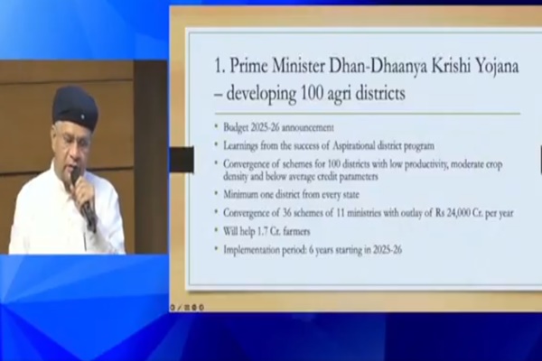 The Scheme aims to enhance agricultural productivity, increase adoption of crop diversification and sustainable agricultural practices, augment post-harvest storage at the panchayat and block levels, improve irrigation facilities and facilitate availability of long-term and short-term credit. It is in pursuance of Budget announcement for 2025-26 to develop 100 districts under “Prime Minister Dhan-Dhaanya Krishi Yojana”. The Scheme will be implemented through convergence of 36 existing schemes across 11 Departments, other State schemes and local partnerships with the private sector.