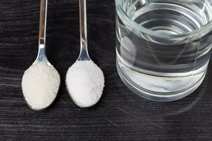 In a clean vessel, mix the sugar and salt in the water. Stir thoroughly until it is all dissolved. The solution should be a little sweet, not too sugary or salty. Getting the ratios right is important, as too much sugar or salt can be dangerous.