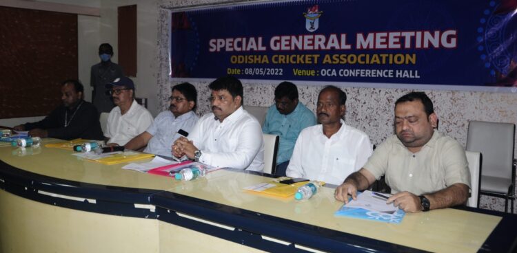 The Odisha Cricket Association held a Special General Meeting on 8th May 2022 (Sunday) at 7:30 PM in the OCA Conference Hall at Barabati Stadium.