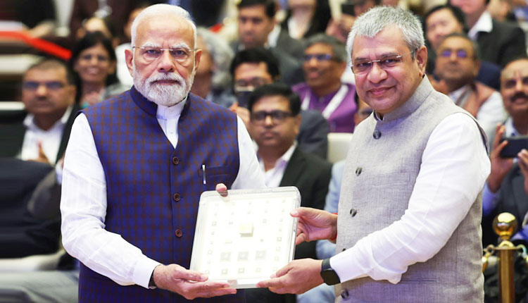Union Minister for Electronics and Information Technology, Ashwini Vaishnaw, presented three semiconductor chips manufactured in Odisha to Prime Minister Narendra Modi during the inauguration of Semicon India 2025, held in New Delhi on Tuesday.